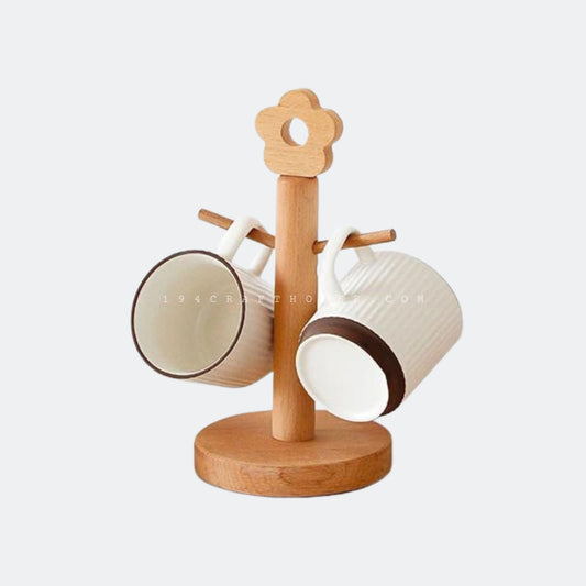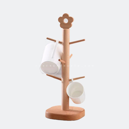6 Branch Wooden Mug Tree Stand Drying Storage Rack Holder | Countertop Kitchen Organizer