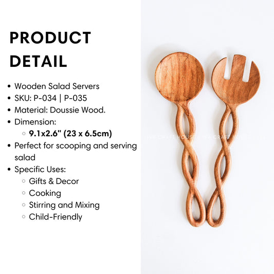 9" Twisted Handle Wooden Salad Servers - Kitchen Serving Utensils
