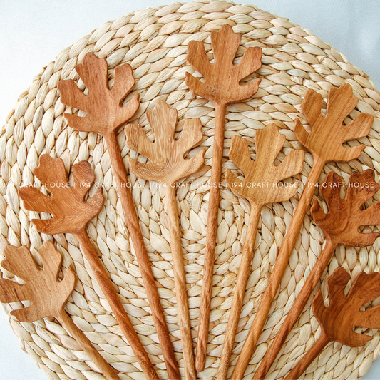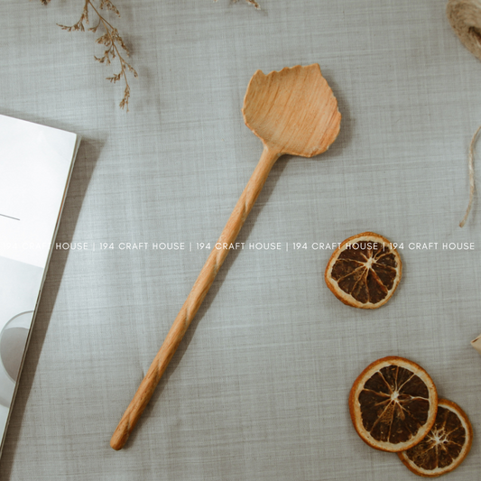 Handcrafted Leaf Shaped Handle Wooden Spoon