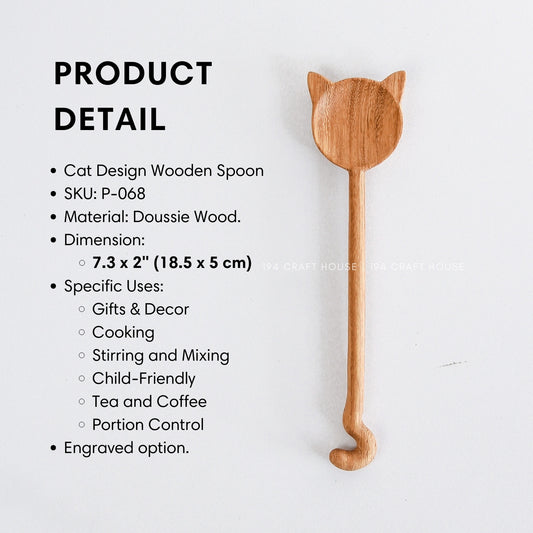 Handcarved Cat Design Wood Stirring Spoon - Kitchen Serving Utensils