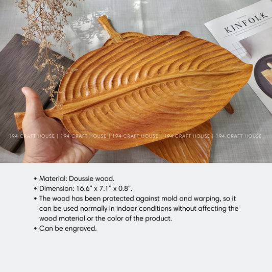 Handcrafted Leaf Handle Wooden Spoon - Kitchen Serving Utensils