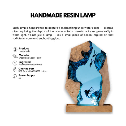Octopus & Scuba Diver Ocean Resin Lamp: #8