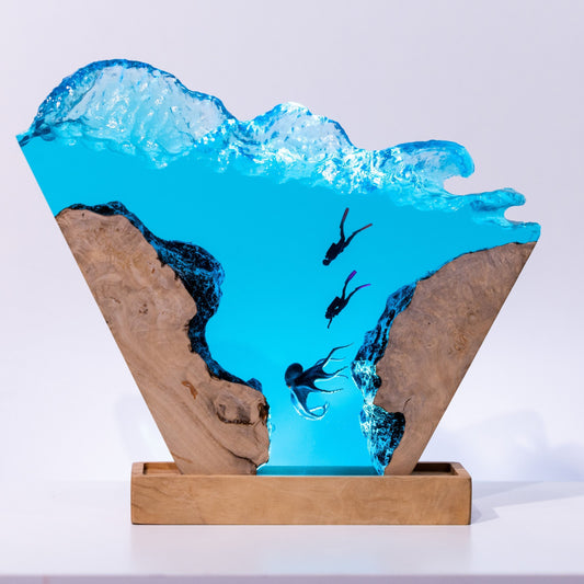 Octopus & Scuba Diver Ocean Resin Lamp: #1