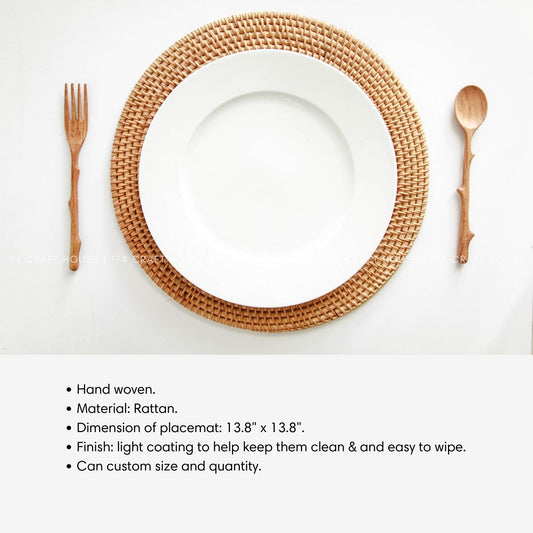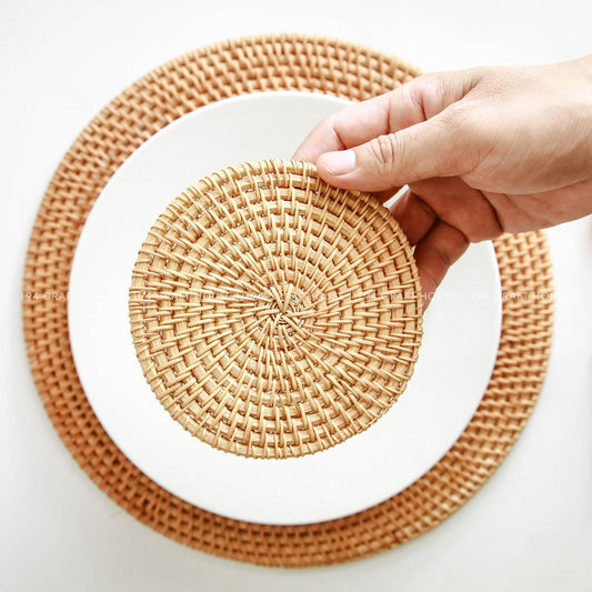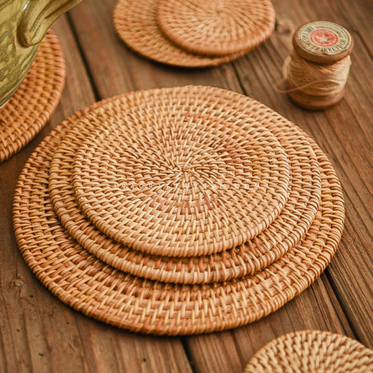 Handwoven Natural Round Rattan Placemats - Dining Table Decor