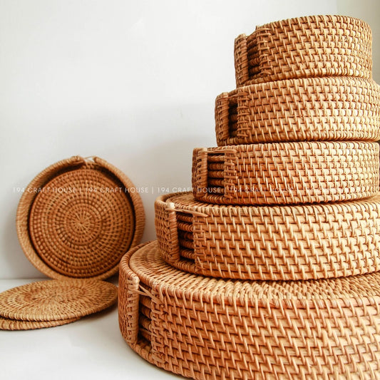 Handmade Round Rattan Coasters With Holder
