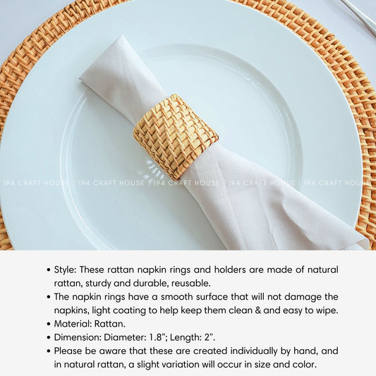 Handwoven Rattan Napkin Rings Set of 6