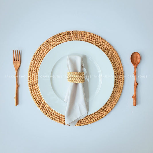 Handwoven Natural Round Rattan Placemats - Dining Table Decor