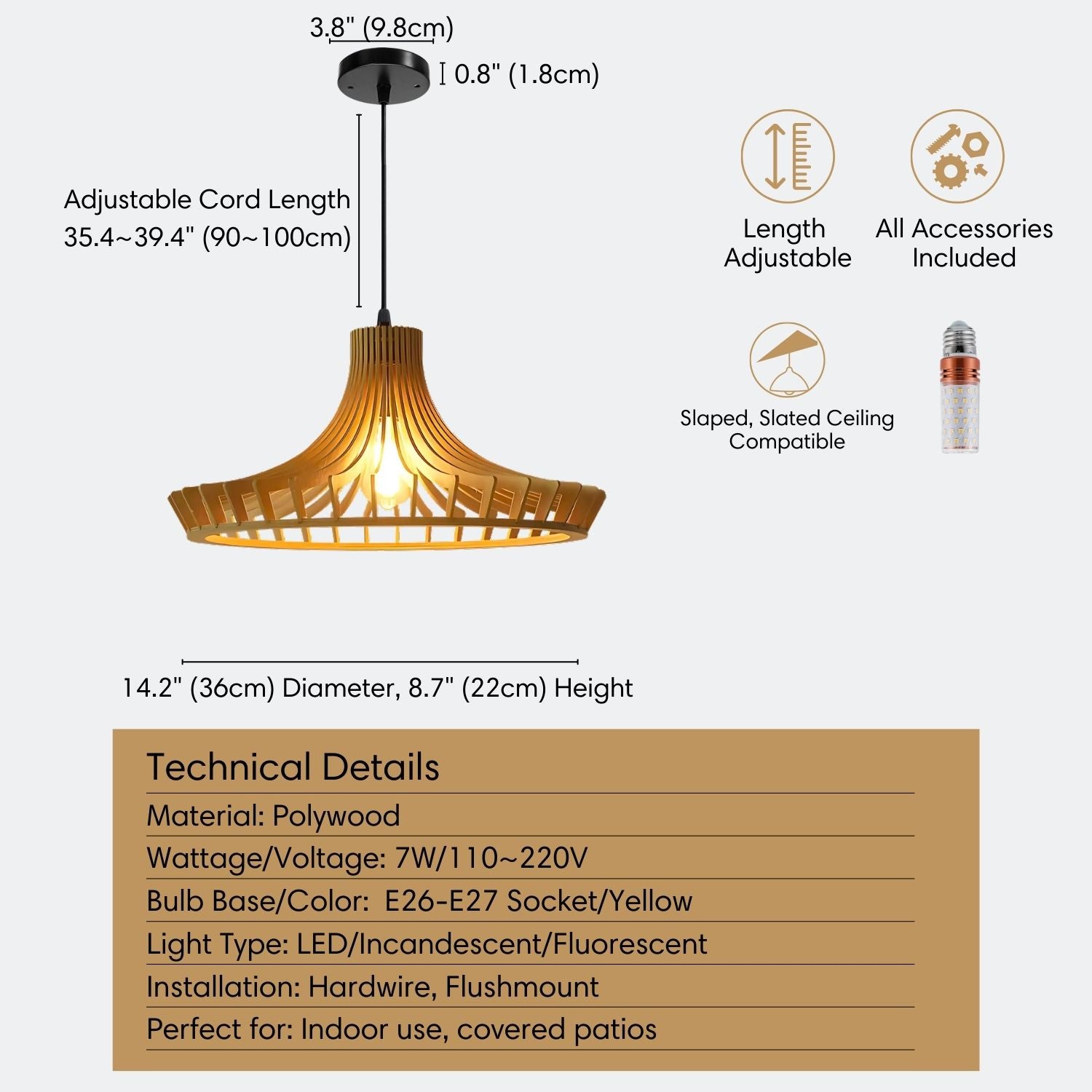 - Mounting Options: Hanging, Pendant Light, Surface.