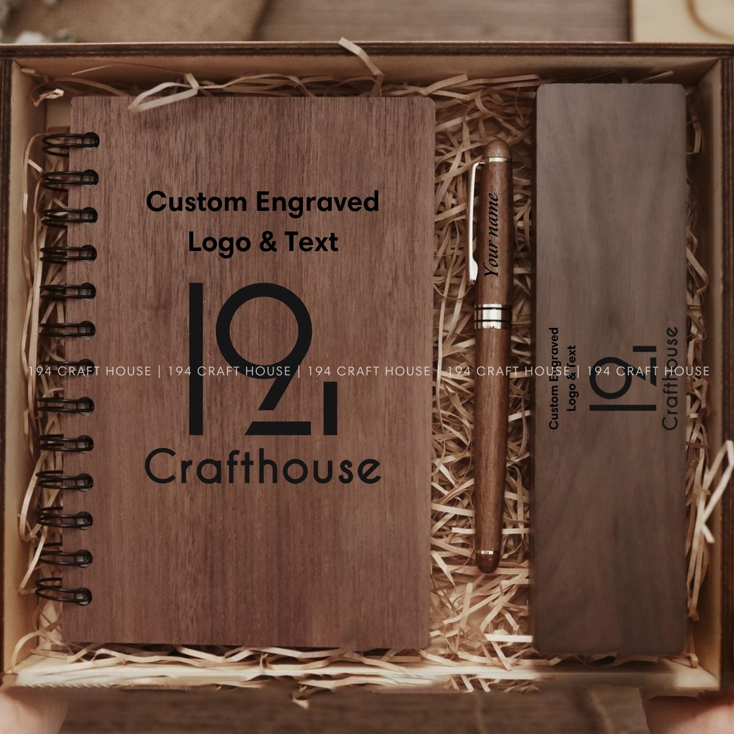 Wooden Notebook and Pen Set Personalized Engraved Gift