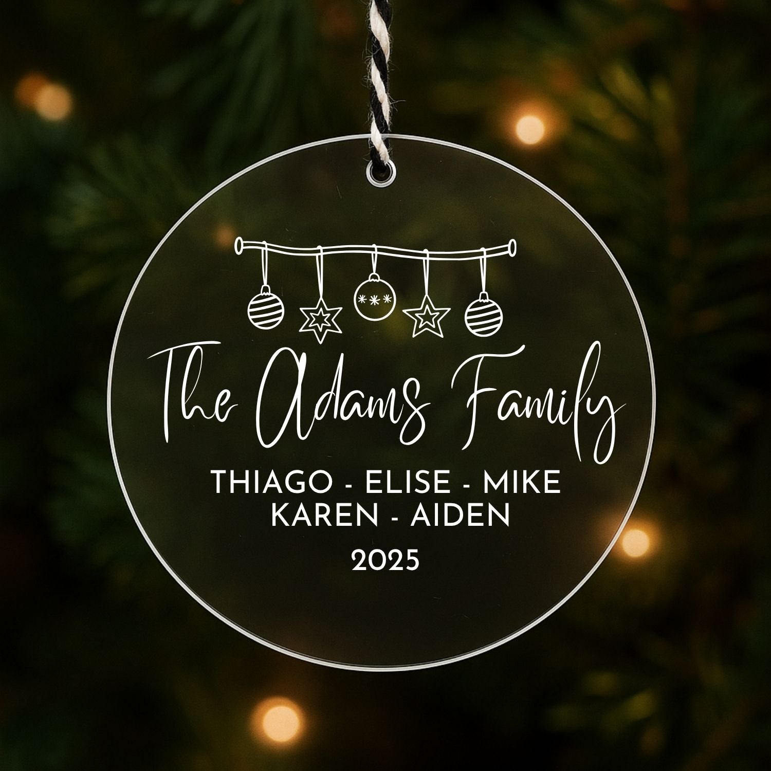 Celebrate the warmth of togetherness with the Family Christmas Personalized Acrylic Ornament, a timeless keepsake engraved with your family’s name and the year that made it special.