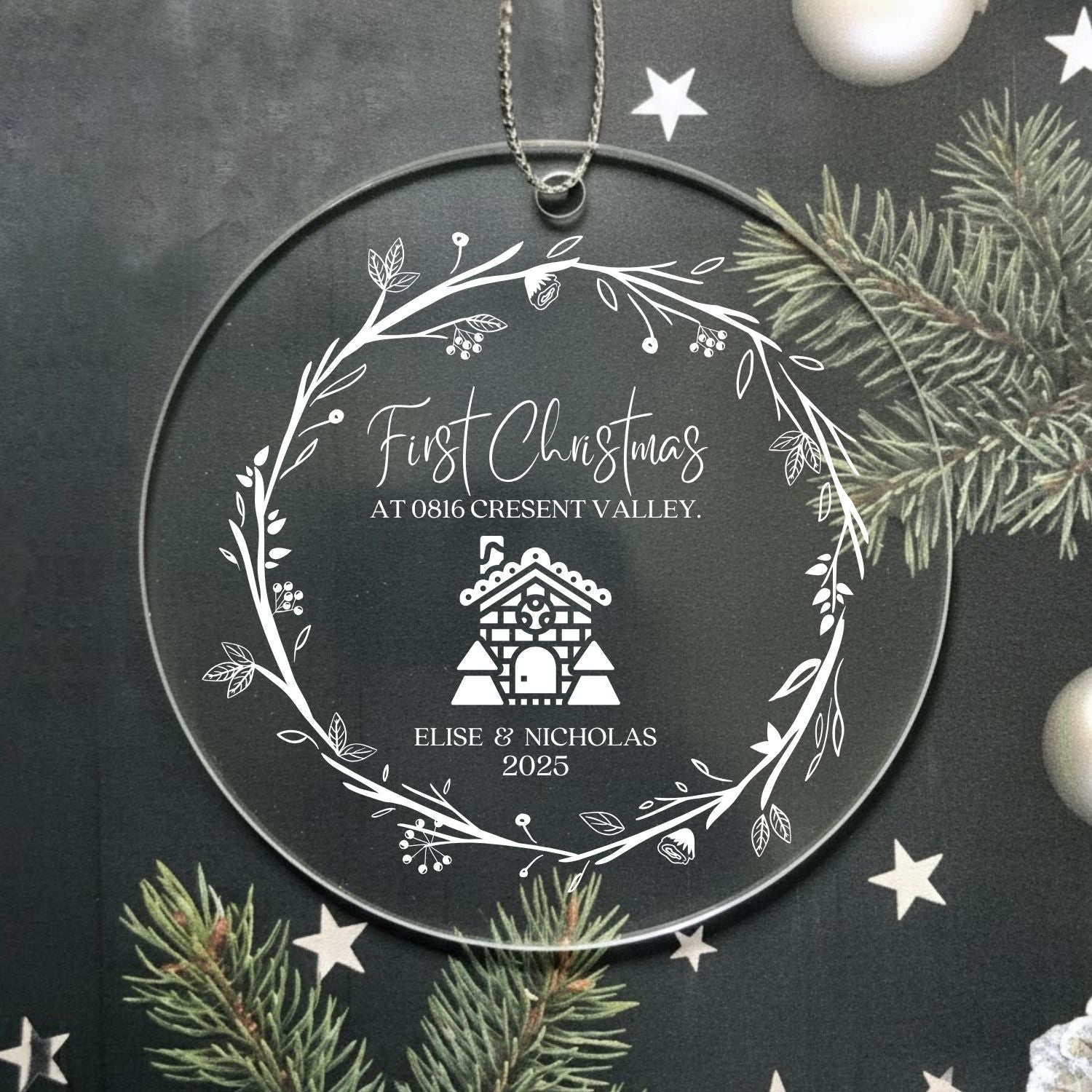 Celebrate your first Christmas in your new home with the Custom New Home Acrylic Christmas Ornament — a meaningful keepsake that captures where your story begins.
