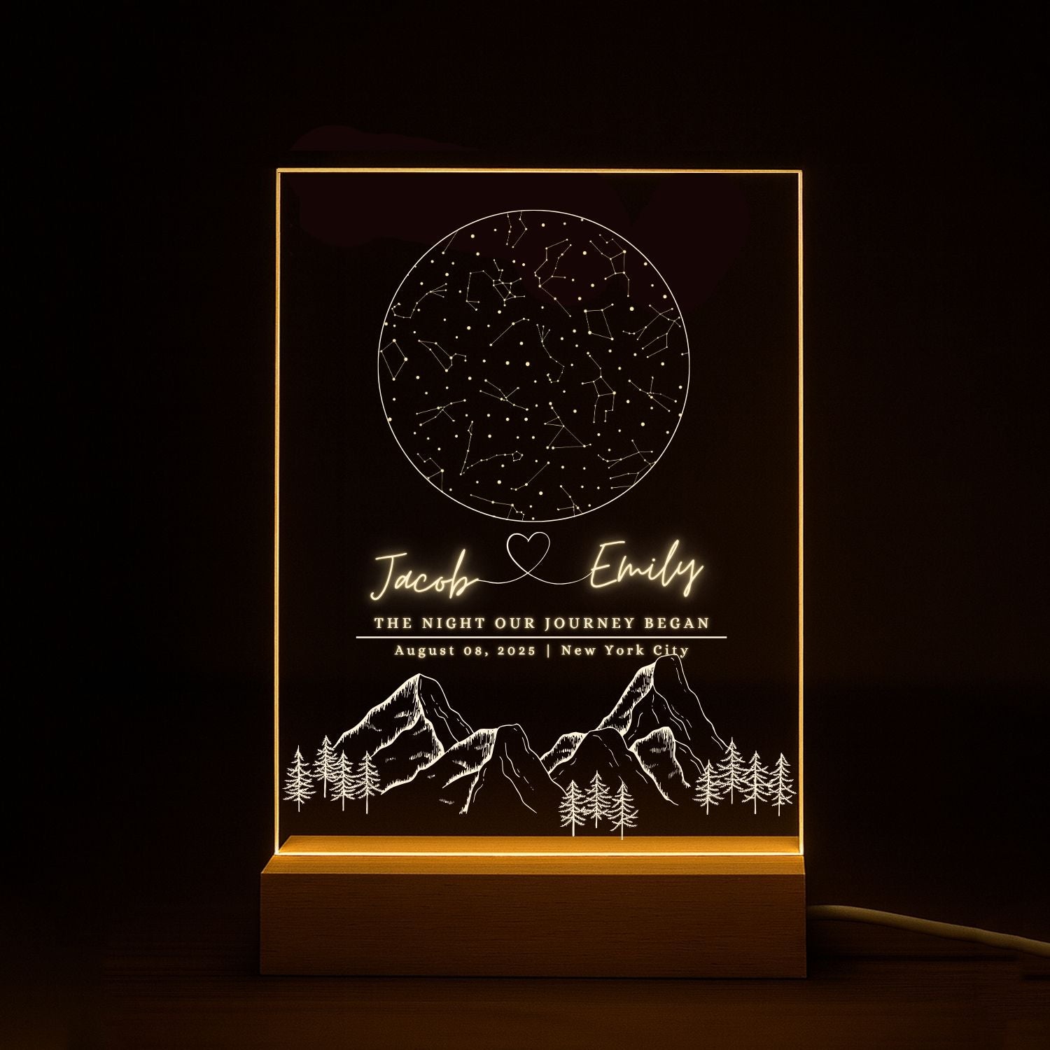 Celebrate the night your story began with the Custom Star Map Night Light— a personalized table lamp desk light that captures the exact night sky from your special date and place. Whether it’s the night you met, your proposal, or your anniversary, this glowing constellation map is a keepsake as timeless as the stars themselves.