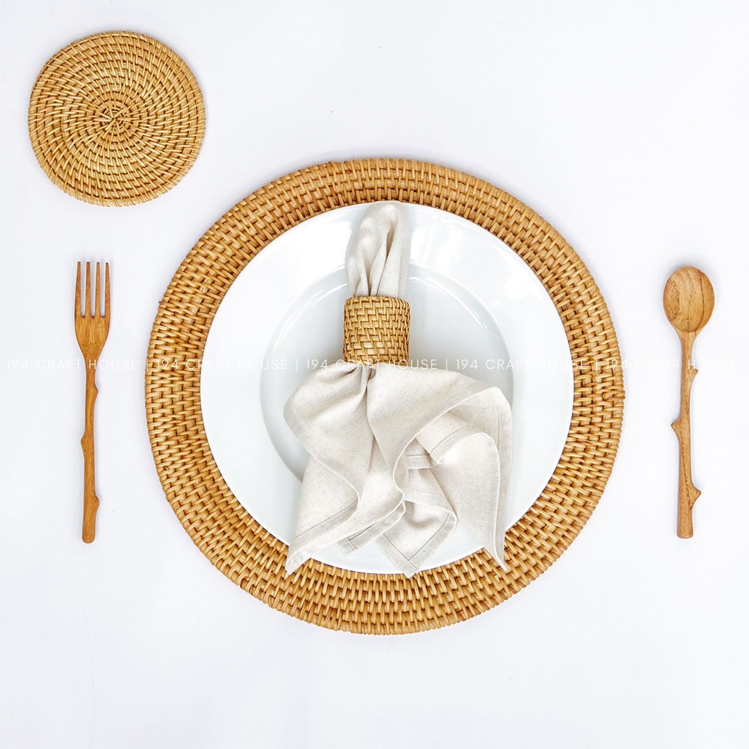 Amazing rattan placemats and coasters set! These arrived very promptly after purchase and they are of great quality! The detailed work is very small and complex, which makes these stand out from other rattan placemats. I went back and bought some coasters after the placemats arrived because I loved them so much!