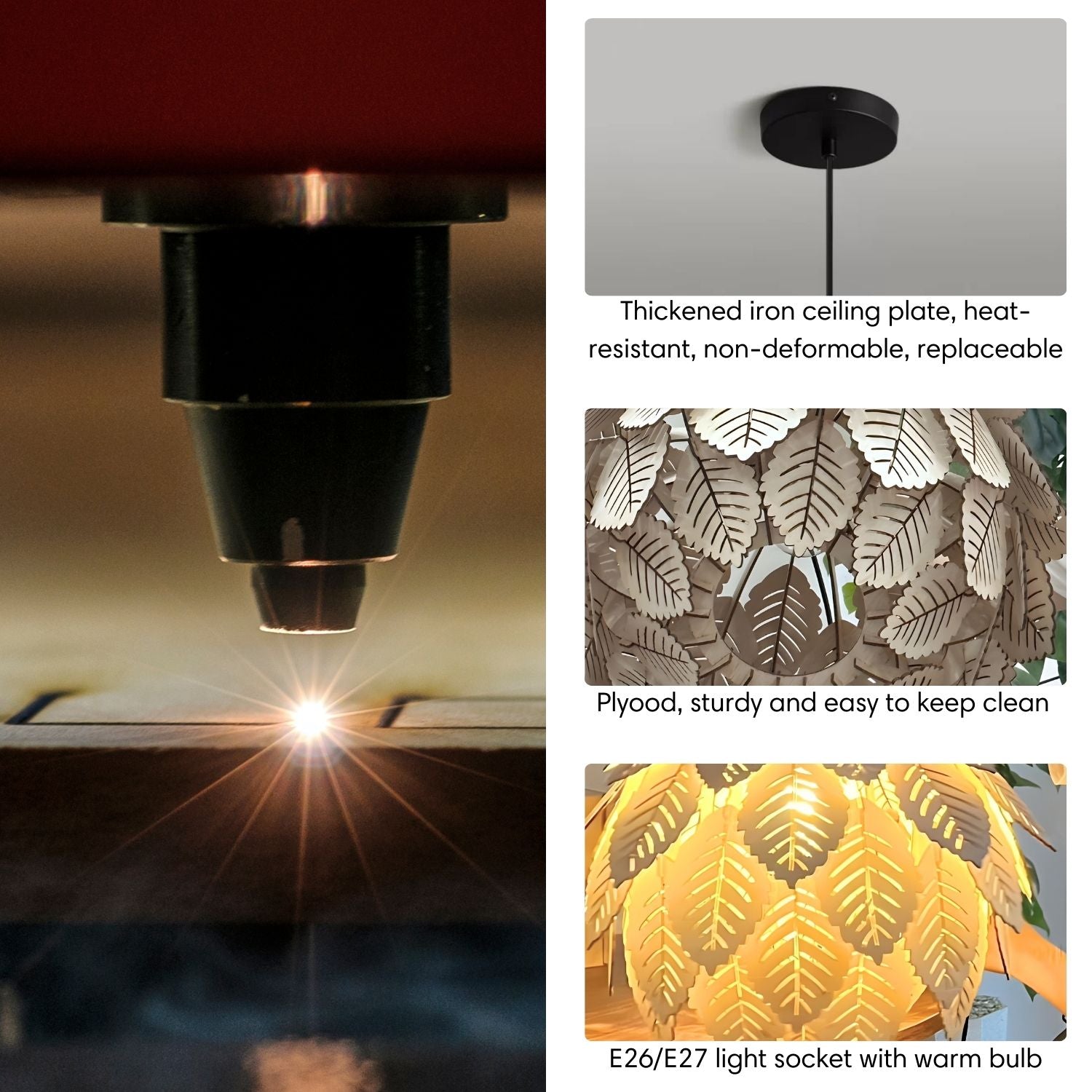 Wood Pendant Light Fixture Leaf Shape for Home Decor