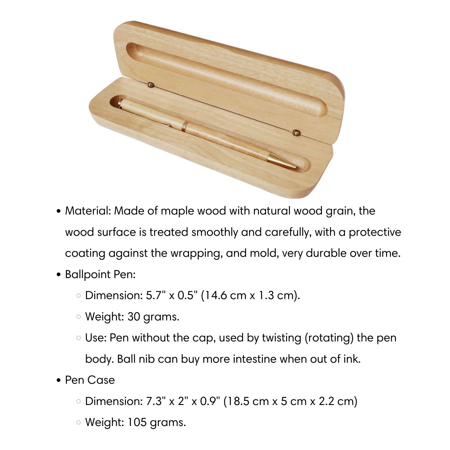 Premium maple ballpoint pen and case set with custom engraving. Personalize engraved with a name, logo, or message—ideal for corporate gifts, executives, and special occasions!