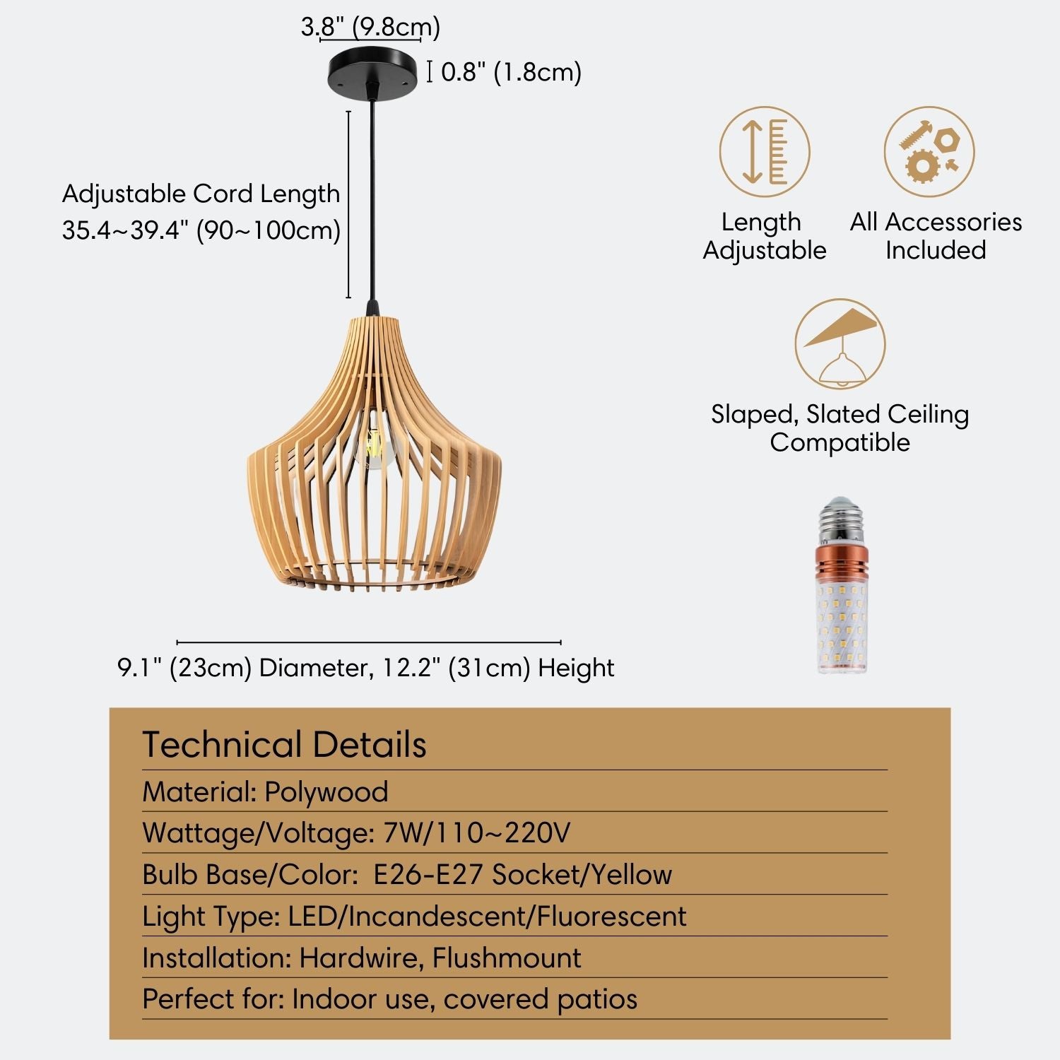 - Bulb Base: E26/E27 Socket