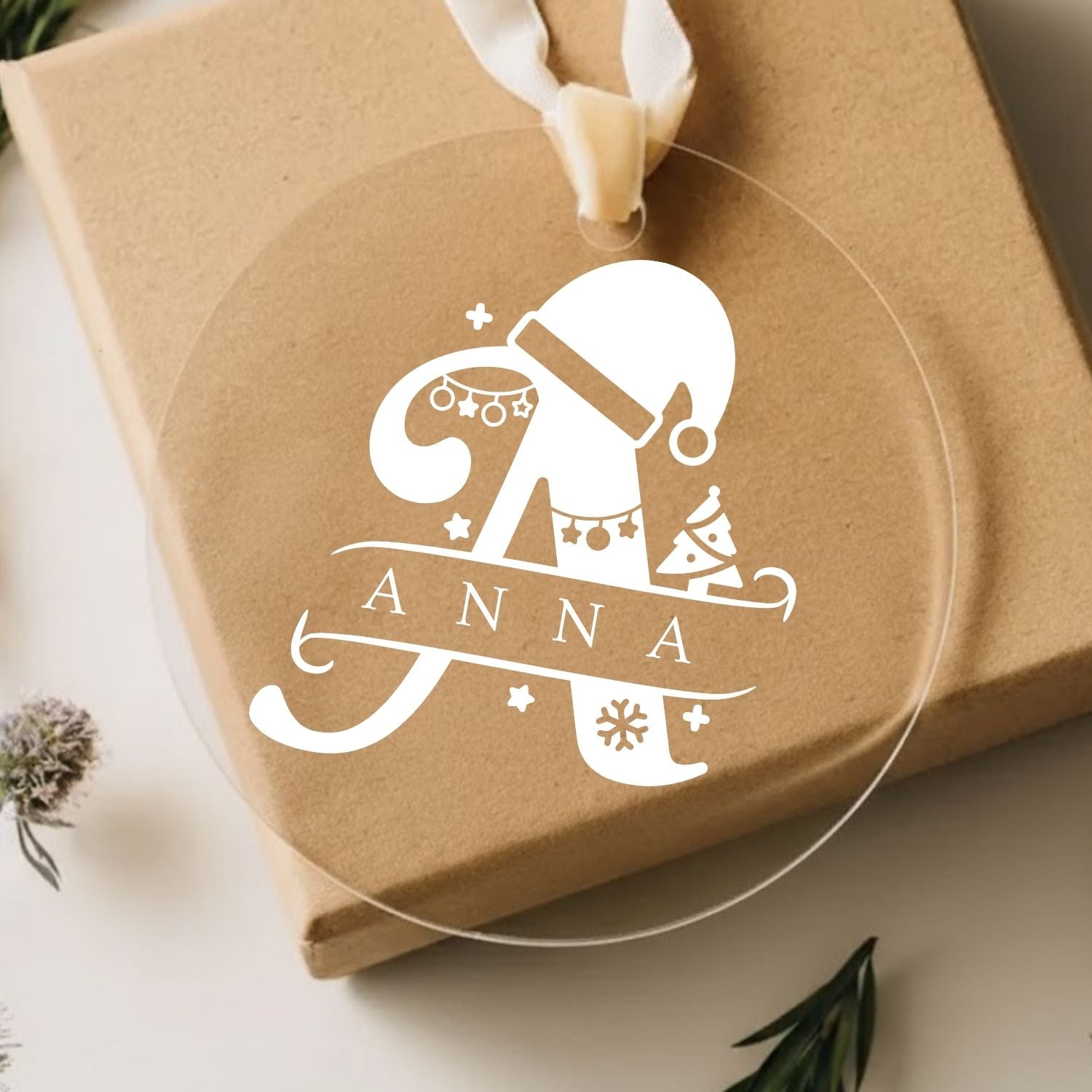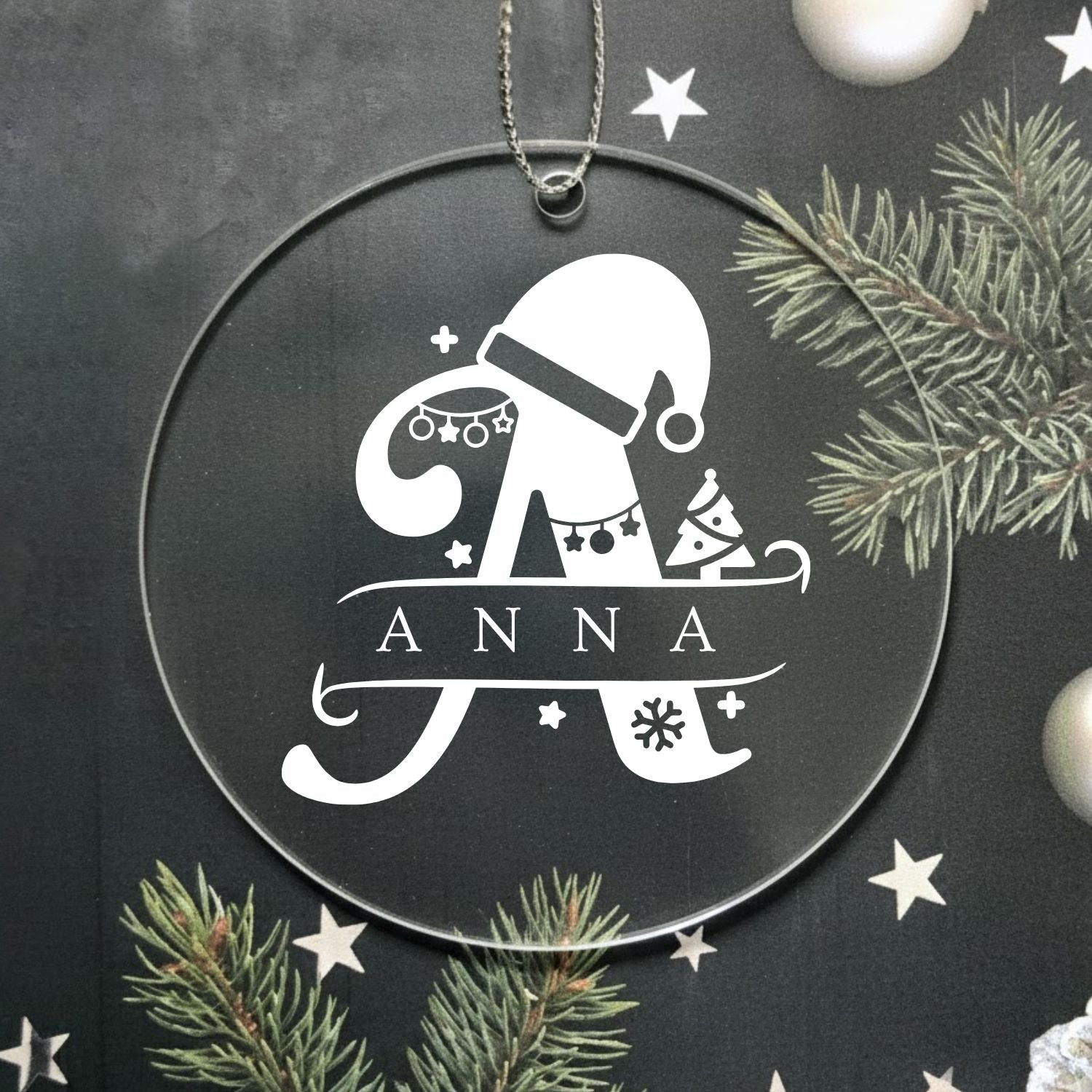 Custom Monogram Name Initial Acrylic Ornament Christmas Gift (A Letter)