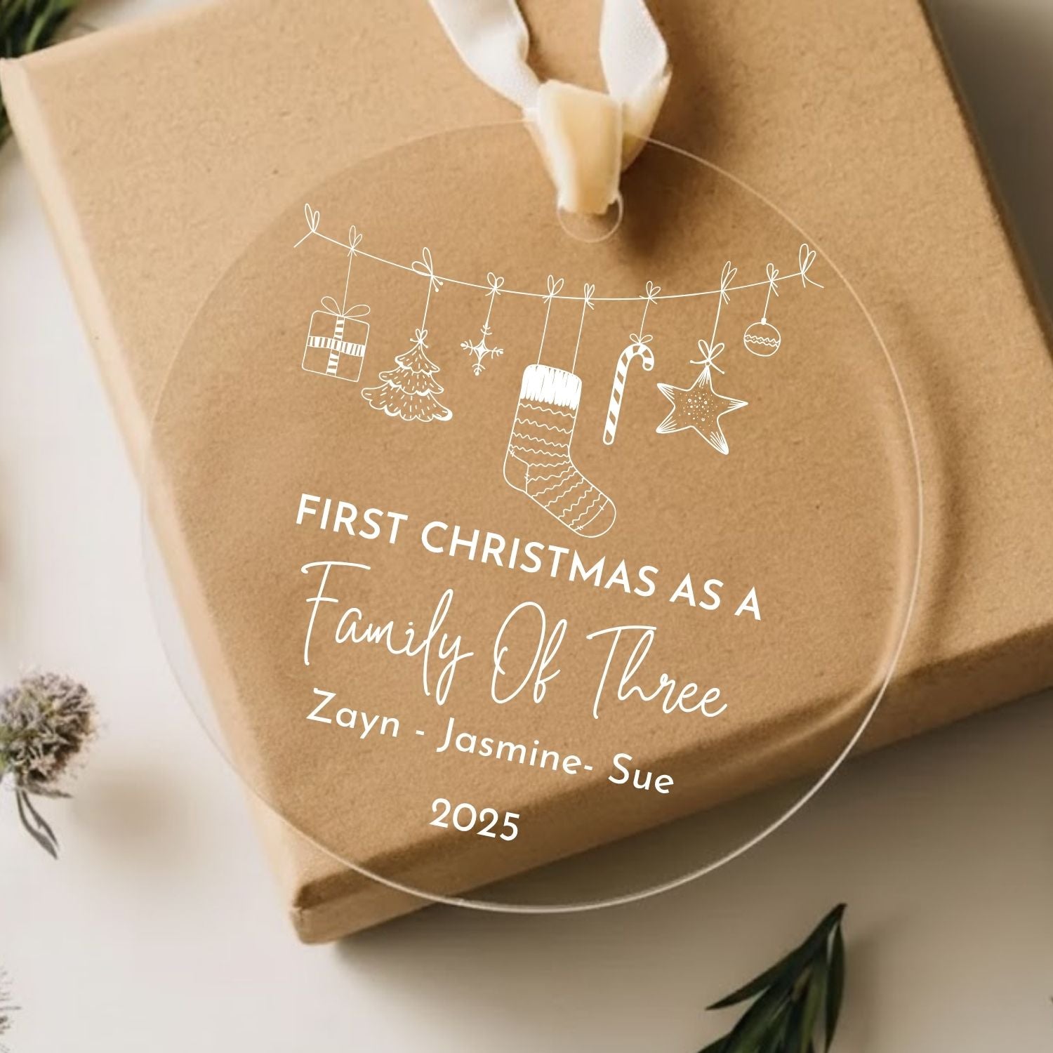 Celebrate the joy of togetherness with the First Christmas Personalized Family Acrylic Ornament — a keepsake that captures love, warmth, and new beginnings under the glow of your Christmas tree.