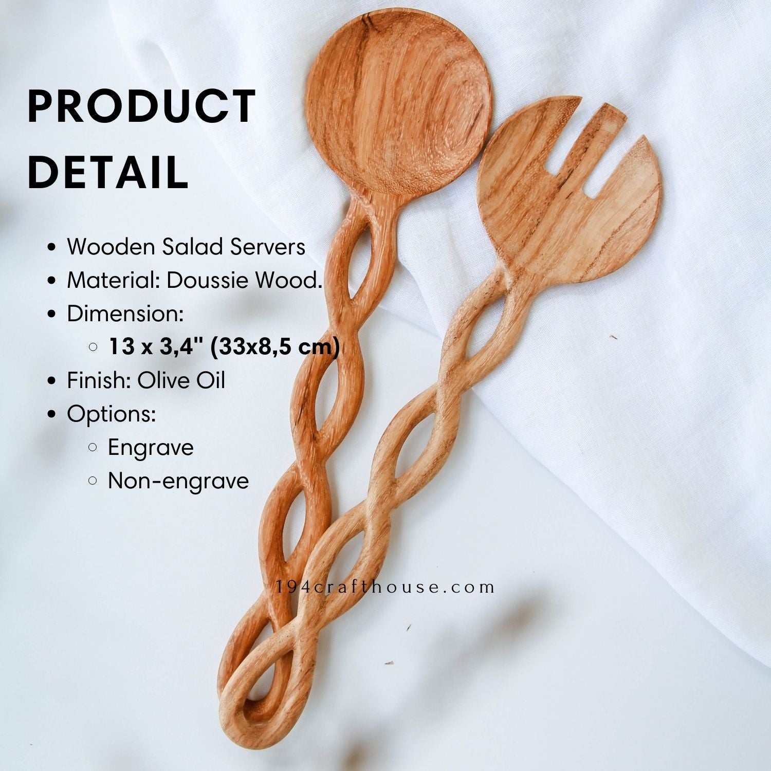 Twisted Wooden Salad Servers perfect to scoop and serve salad. They are also great for serving salad, pasta, rice and more. Enhance your kitchen and dining table decor.