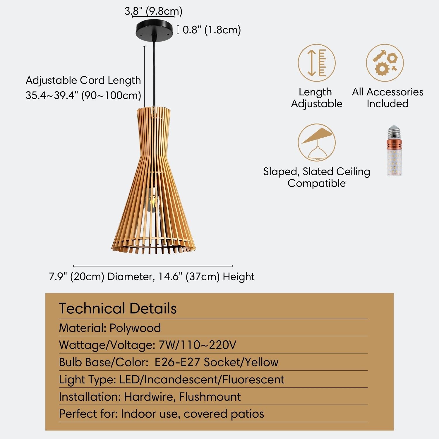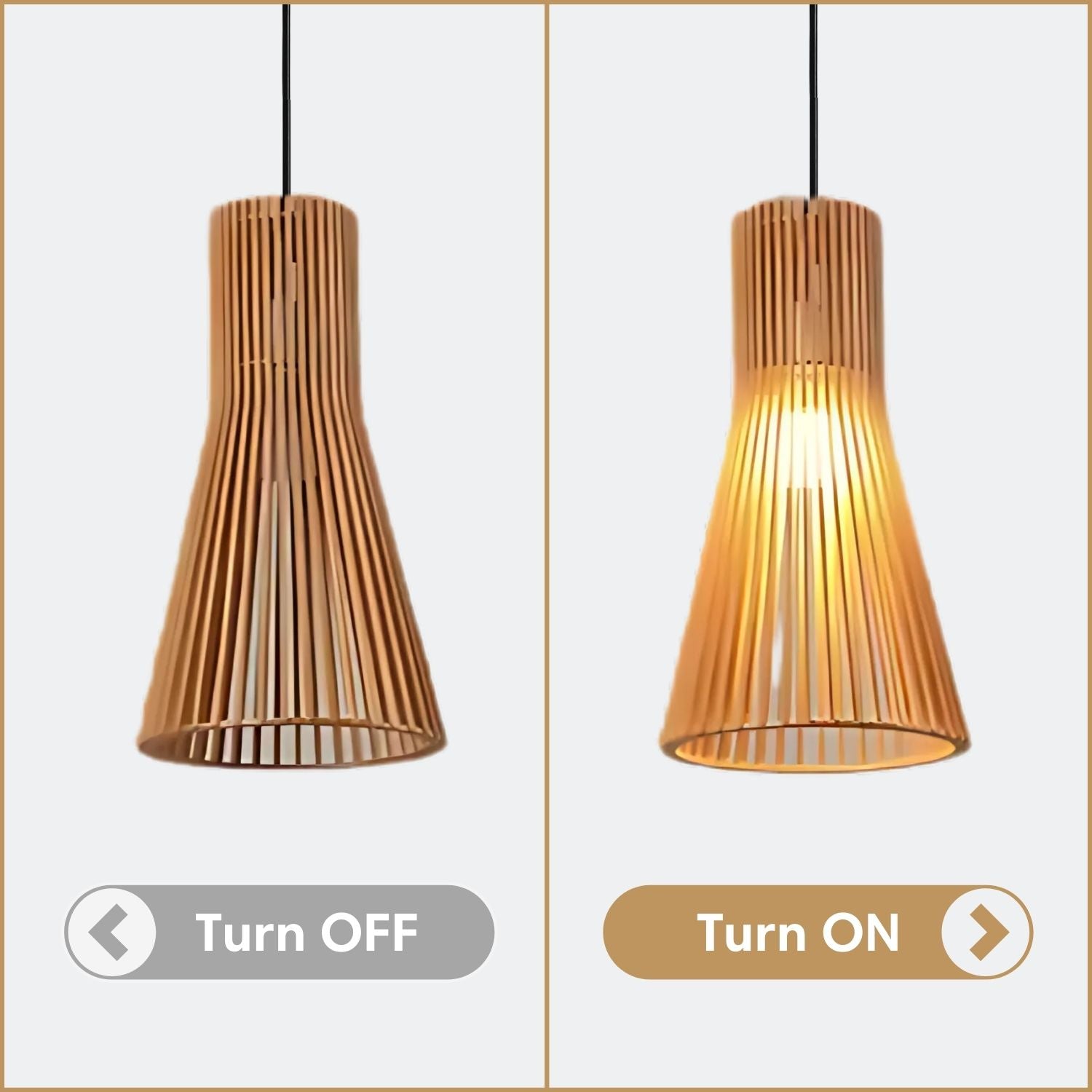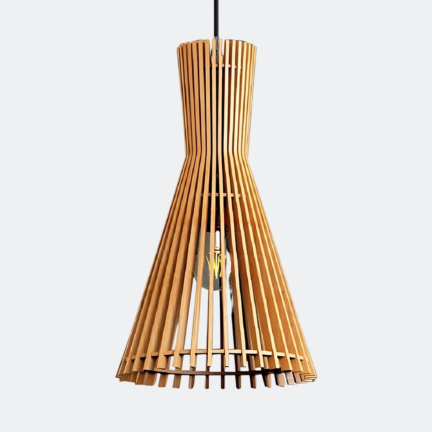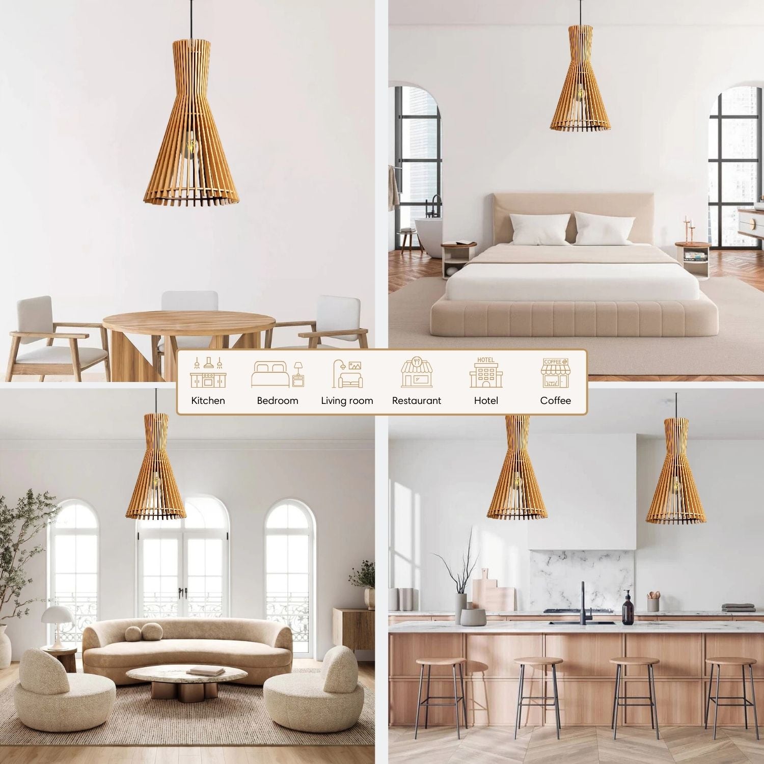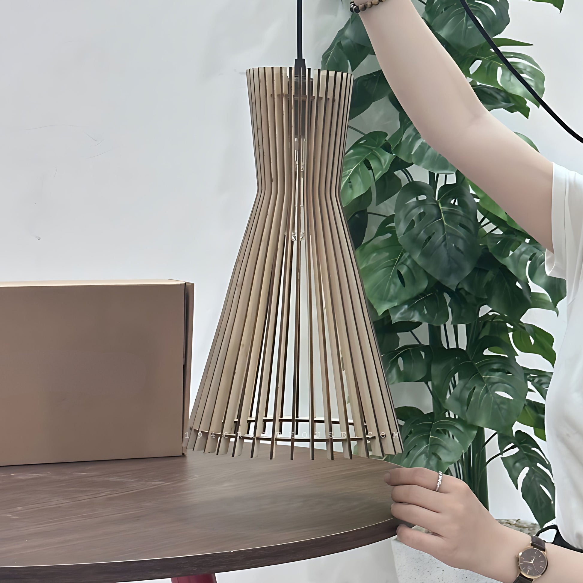 Elevate your interior lighting with this Wooden Hourglass Pendant Light, a sculptural piece handcrafted from natural wood slats arranged in a gently curved, open-frame hourglass silhouette. This modern design lets the light pass freely, creating captivating shadows while maintaining a minimalist elegance.al wood, it delivers warmth and elegance while allowing light to shine through freely