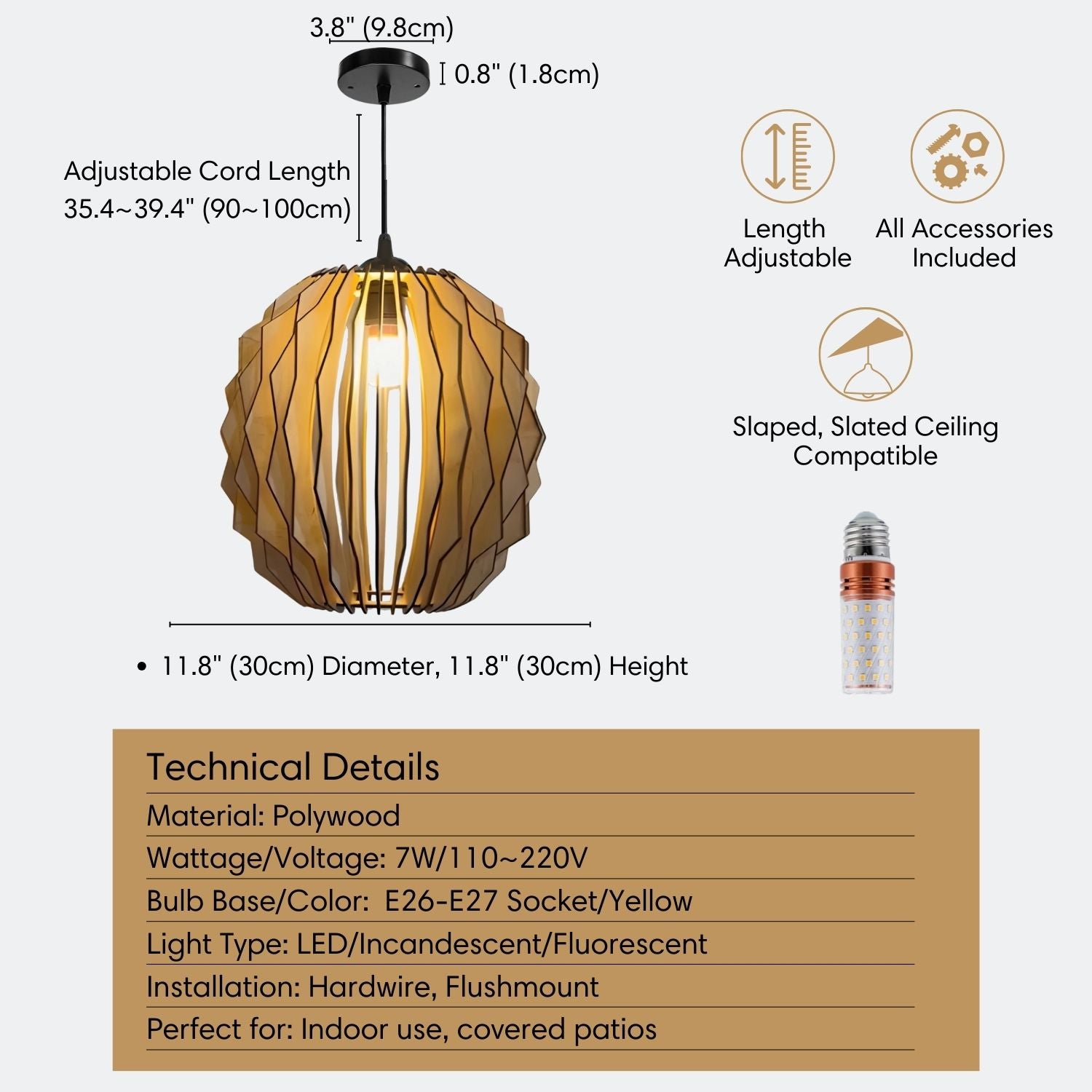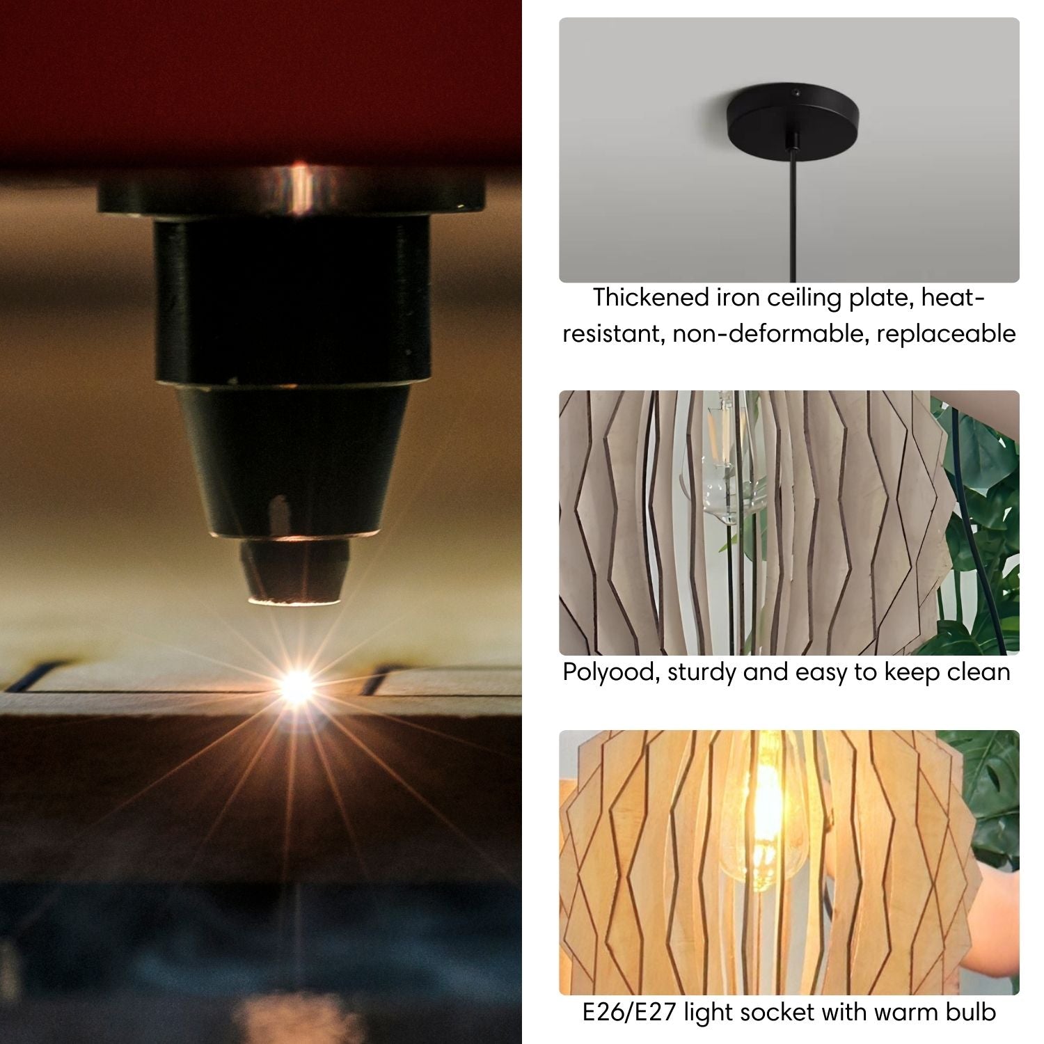Bring architectural charm to your space with this Modern Geometric Wood Pendant Light, designed with a sleek oval lantern silhouette that fuses natural materials and contemporary form. Crafted from high-quality natural wood, this handcrafted pendant delivers both elegance and function.