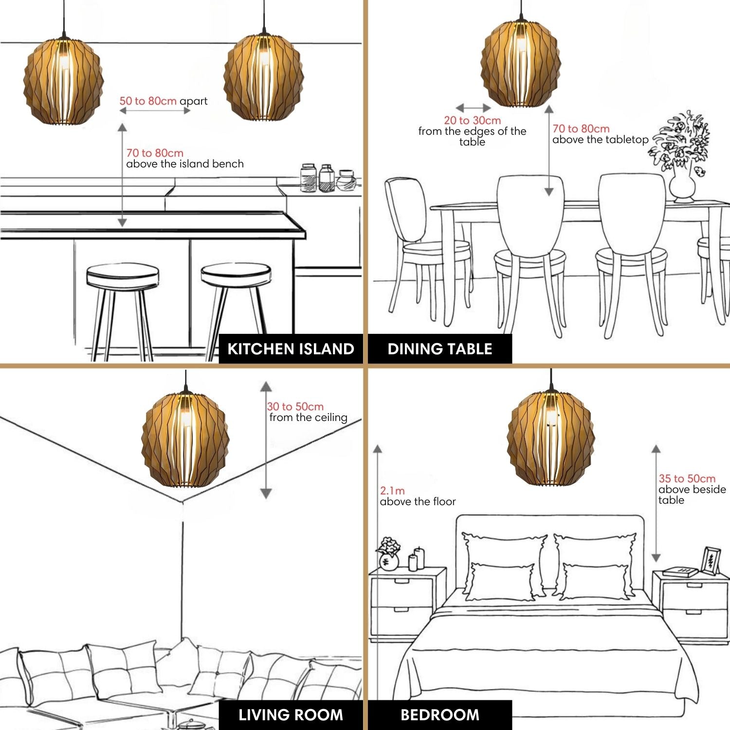 - Mounting Options: Hanging, Pendant Light, Surface.
